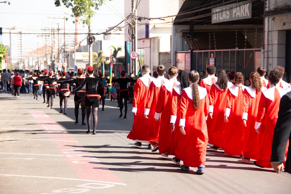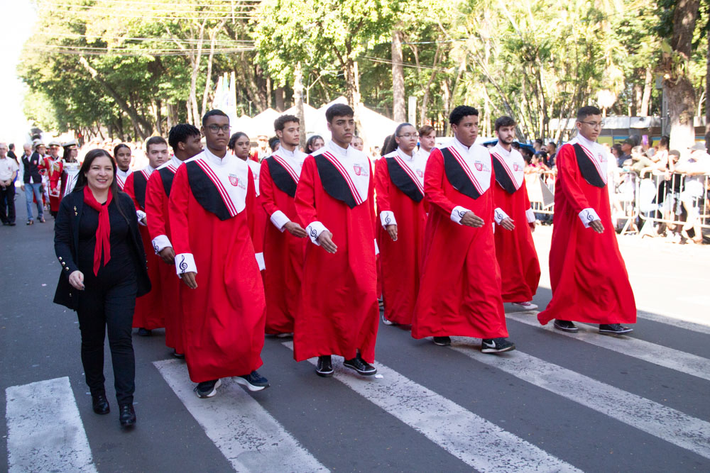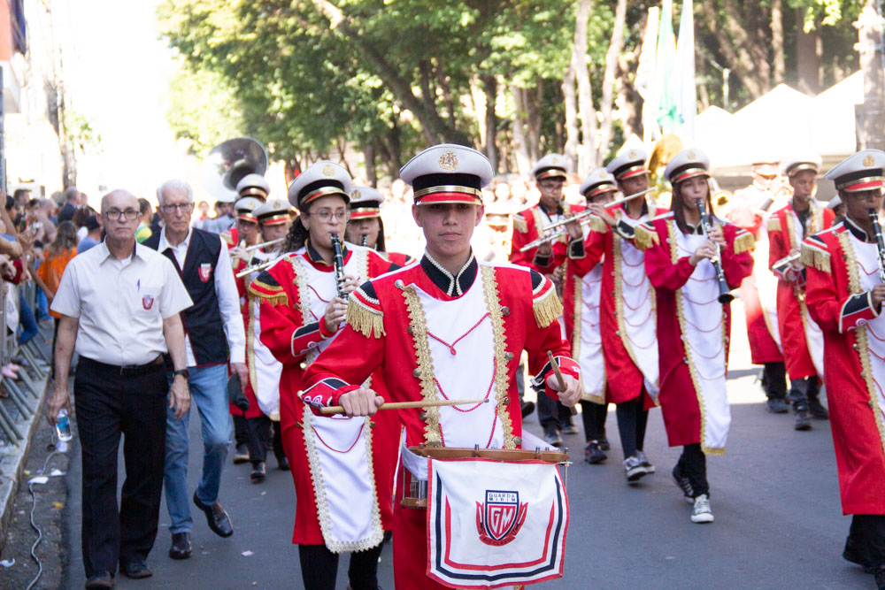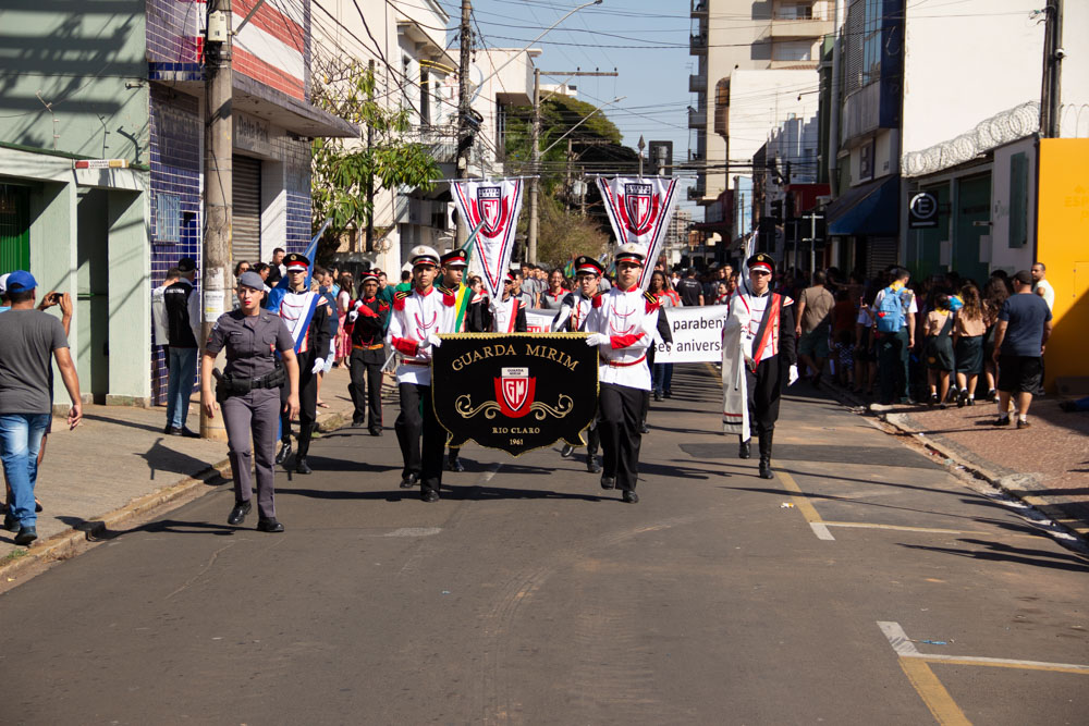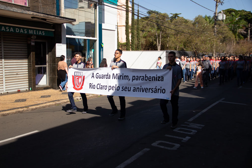Ao final do desfile, a Guarda Mirim, acompanhada pela Banda e pelo Coral, presenteou a cidade com a execução do Hino de Rio Claro, homenageando não apenas o aniversário da cidade, mas também a união e o espírito festivo da comunidade rio-clarense.