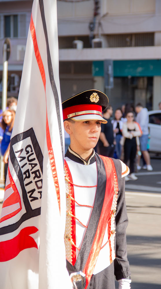 Os porta-bandeiras, demonstrando um desempenho exemplar e sincronizado, representaram a Guarda Mirim com orgulho e reverência. Seu comprometimento e dedicação foram evidentes em cada movimento, destacando a importância da formação cívica e moral proporcionada pela instituição.
