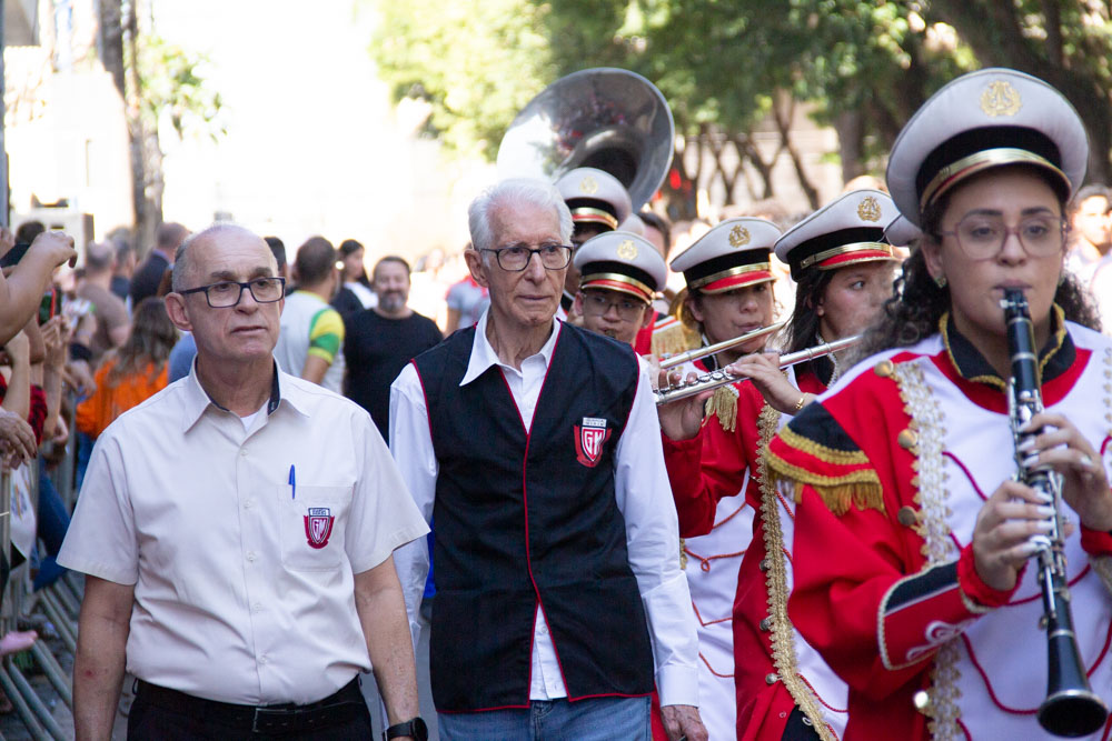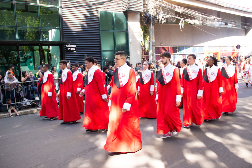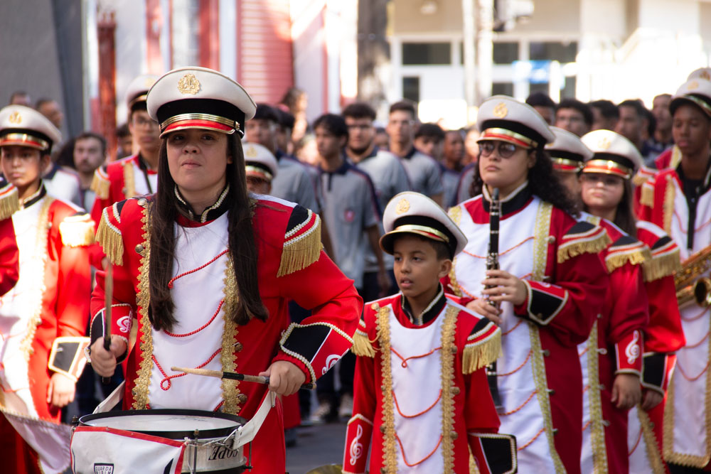 A Banda Musical, composta por talentosos músicos da Instituição, encantou o público com suas apresentações vibrantes. O Coral da Guarda Mirim também participou, acrescentando um toque especial ao desfile com suas harmonias vocais, que ressoaram de forma magnífica pelo percurso.