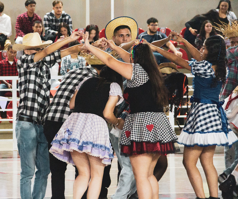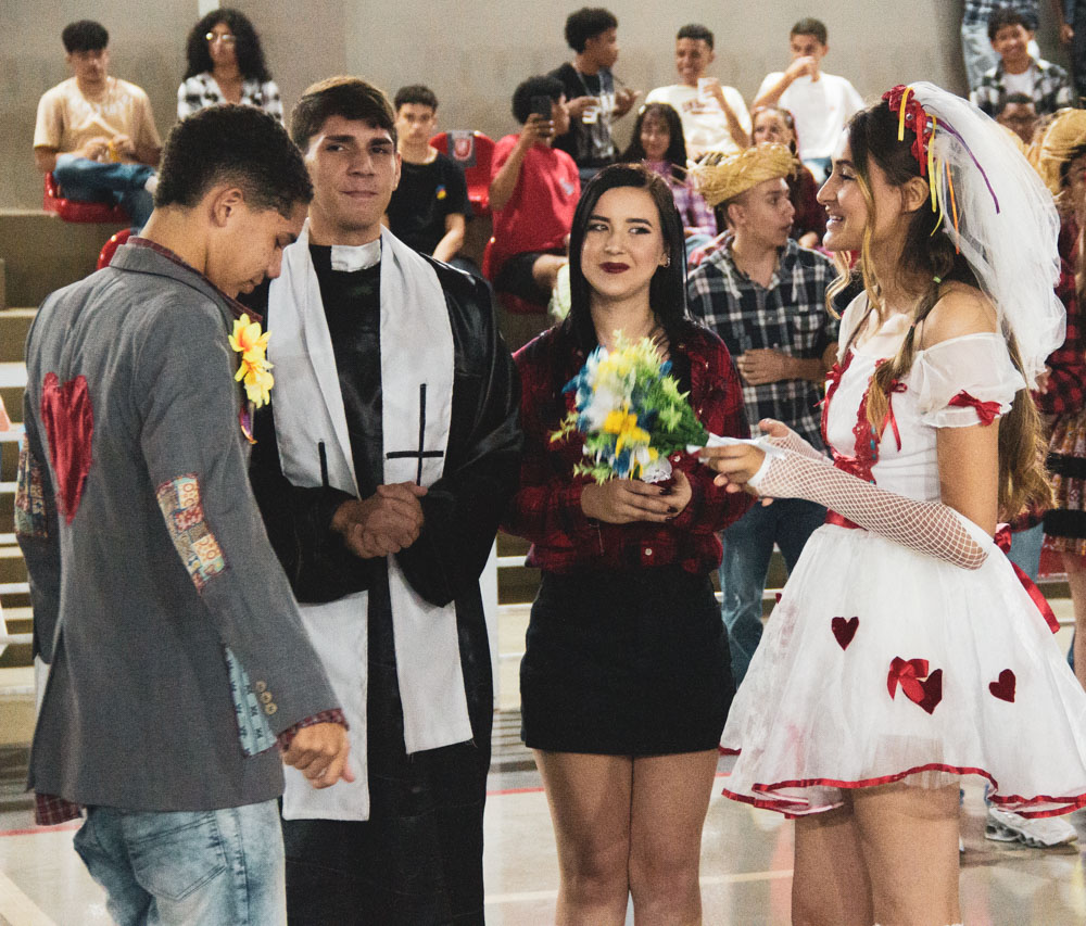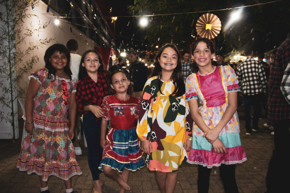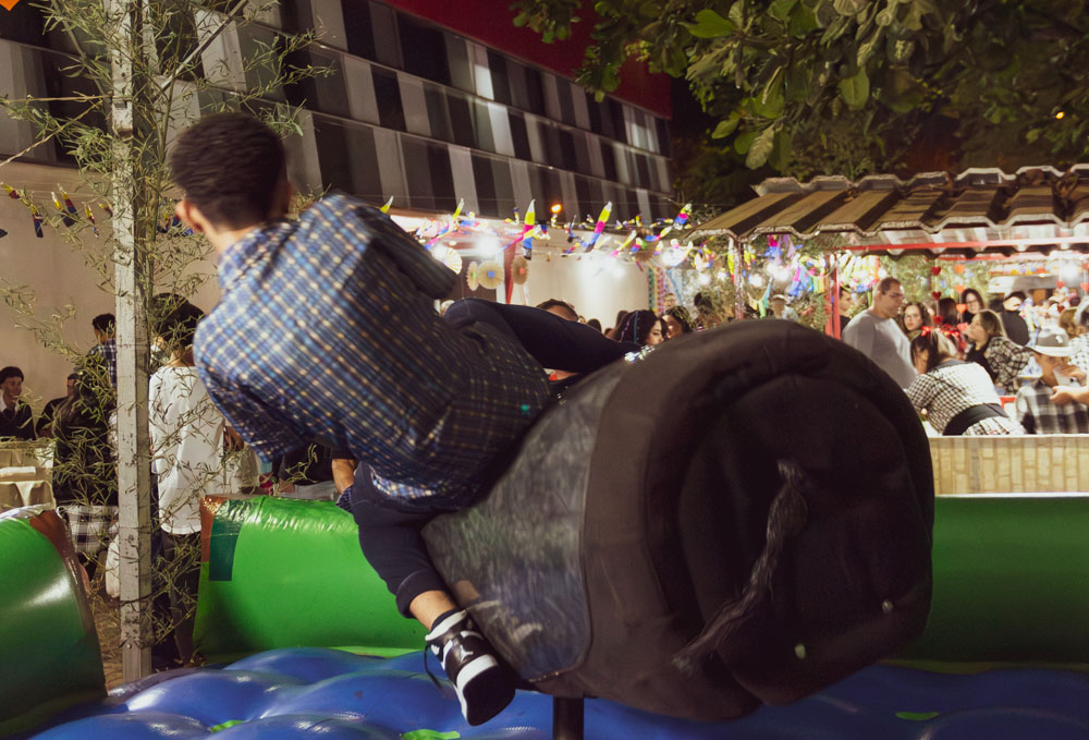 A festa contou com uma variedade de atividades folclóricas que encantaram todos os presentes. Um dos destaques foi o Touro Mecânico, que desafiou os participantes a manterem o equilíbrio e proporcionou momentos de muita risada e descontração. A alegórica fogueira, símbolo das festas juninas, trouxe um clima acolhedor e nostálgico, aquecendo o coração de todos.