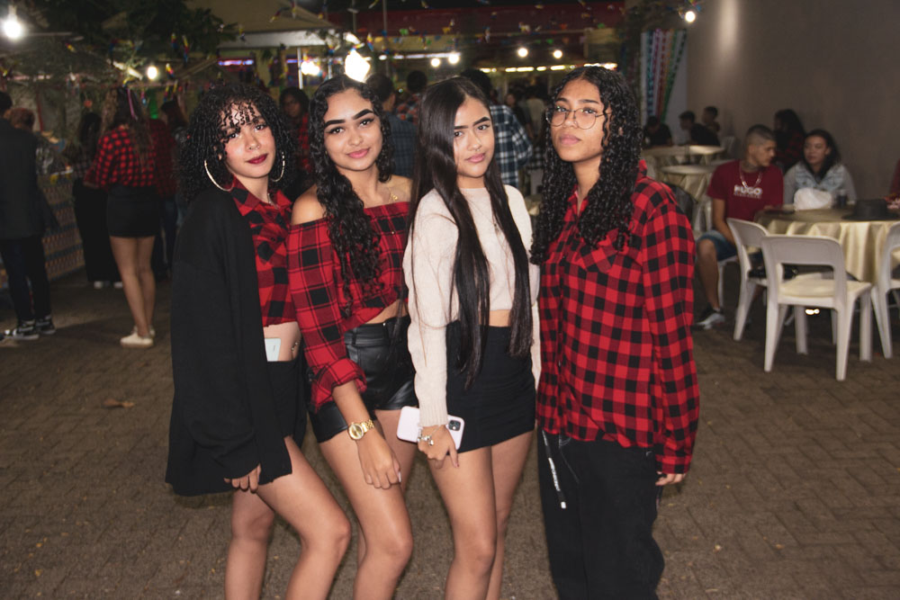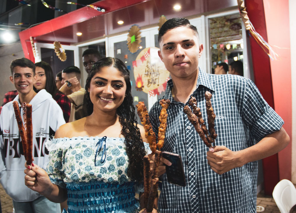 As barraquinhas temáticas ofereceram uma diversidade de delícias típicas da culinária junina, incluindo espetinhos, cachorro-quente, cuscuz e doces regionais, proporcionando uma verdadeira experiência gastronômica aos visitantes.