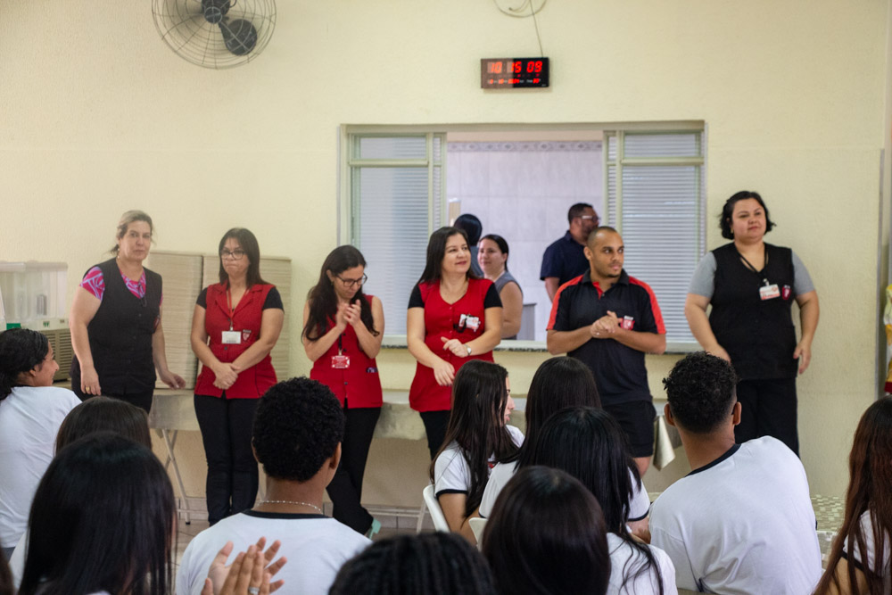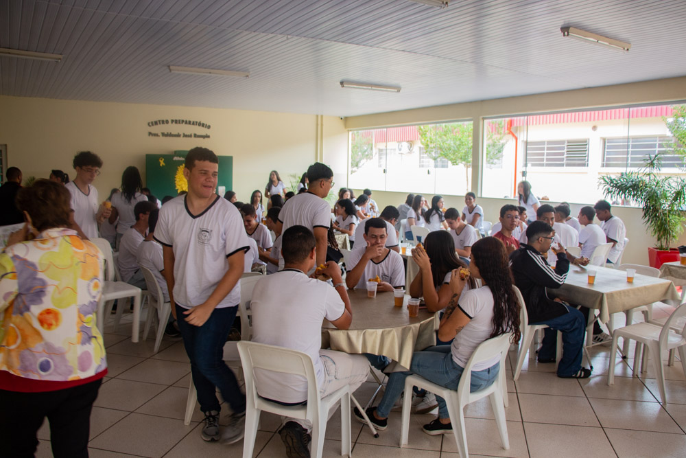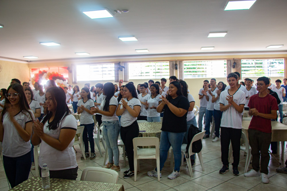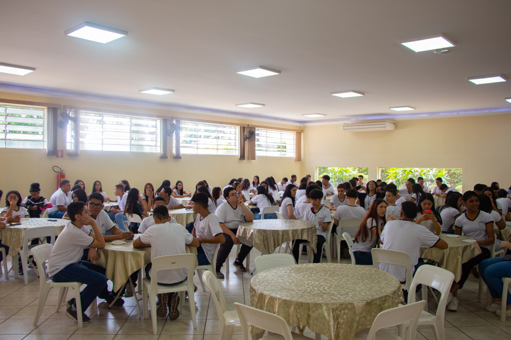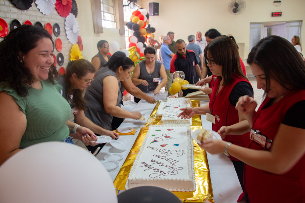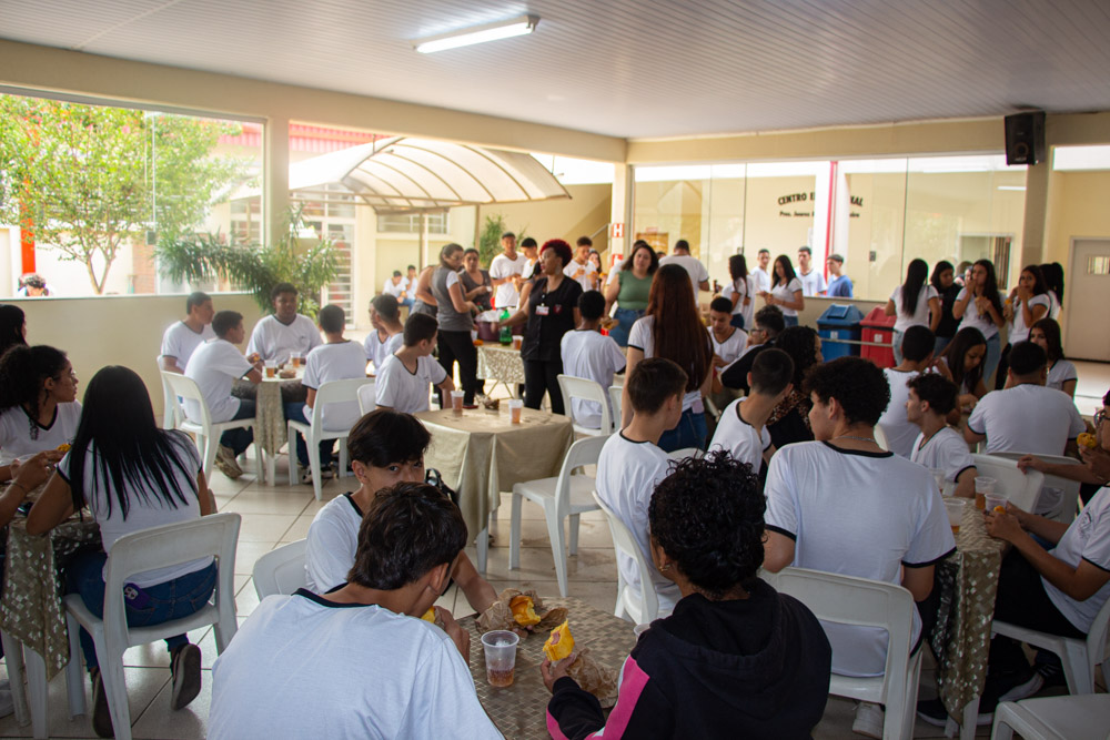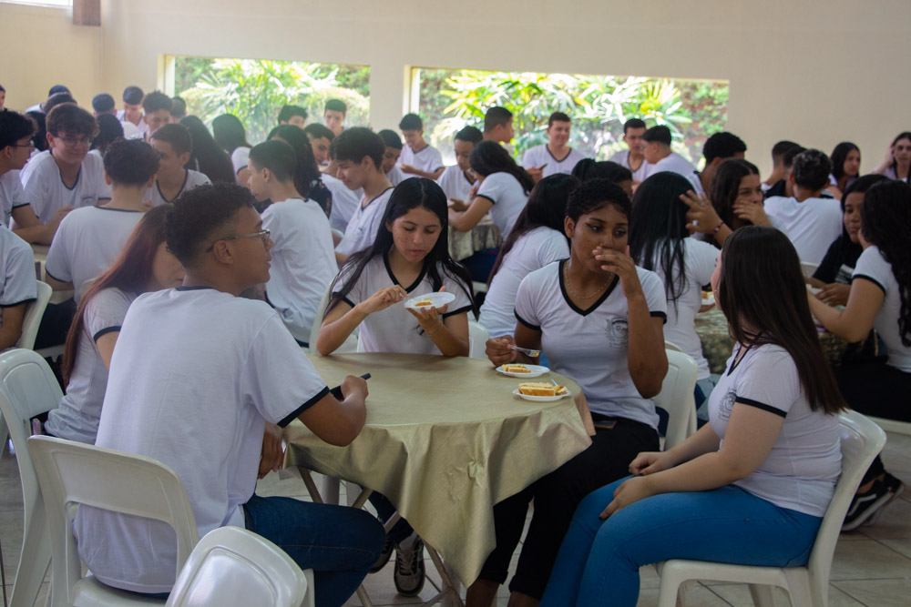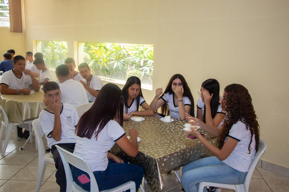 Uma comemoração regada por um lanche especial e o tradicional bolo, reunindo todos os adolescentes presentes e colaboradores da Instituição.