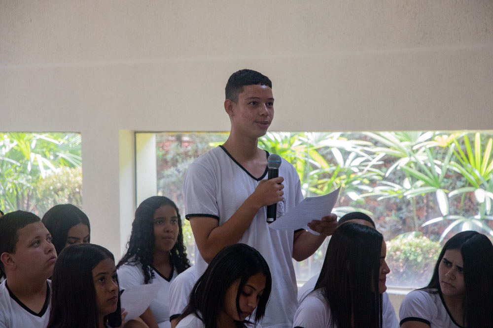 Durante a apresentação e leitura do texto, os jovens demonstraram engajamento, expondo entendimento sobre as mensagens transmitidas e relacionando-as com suas próprias experiências de vida.
