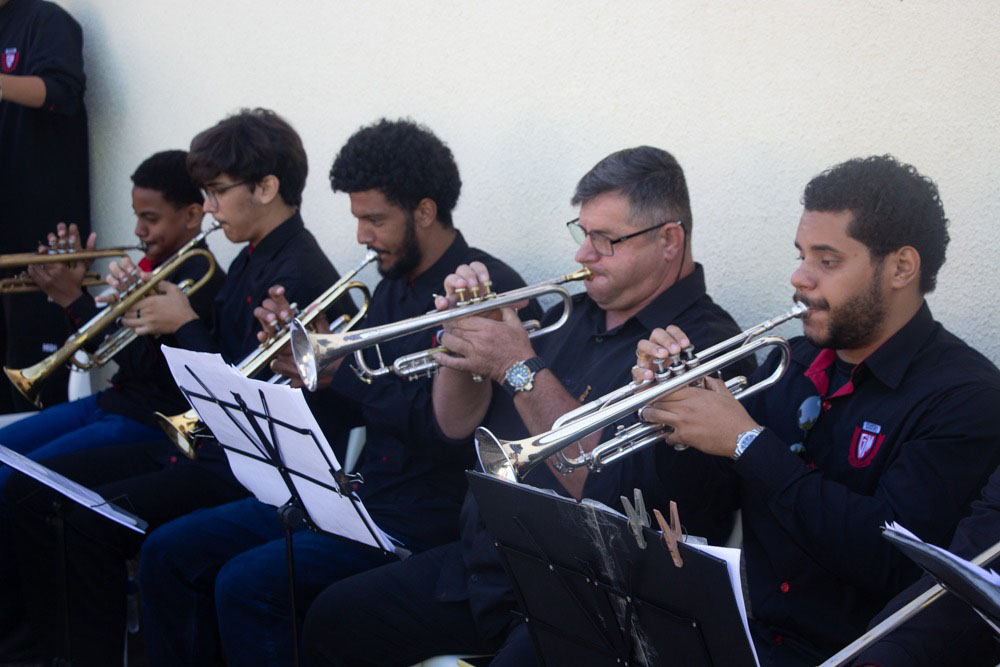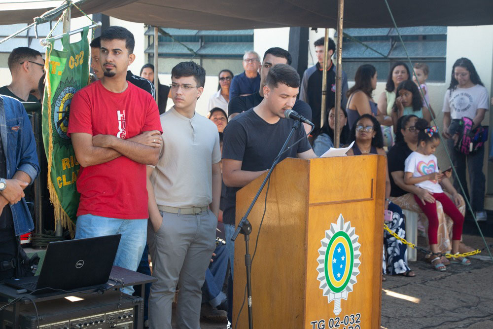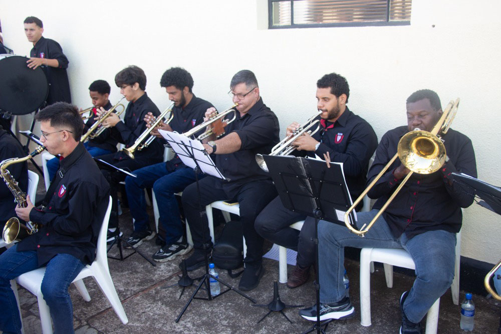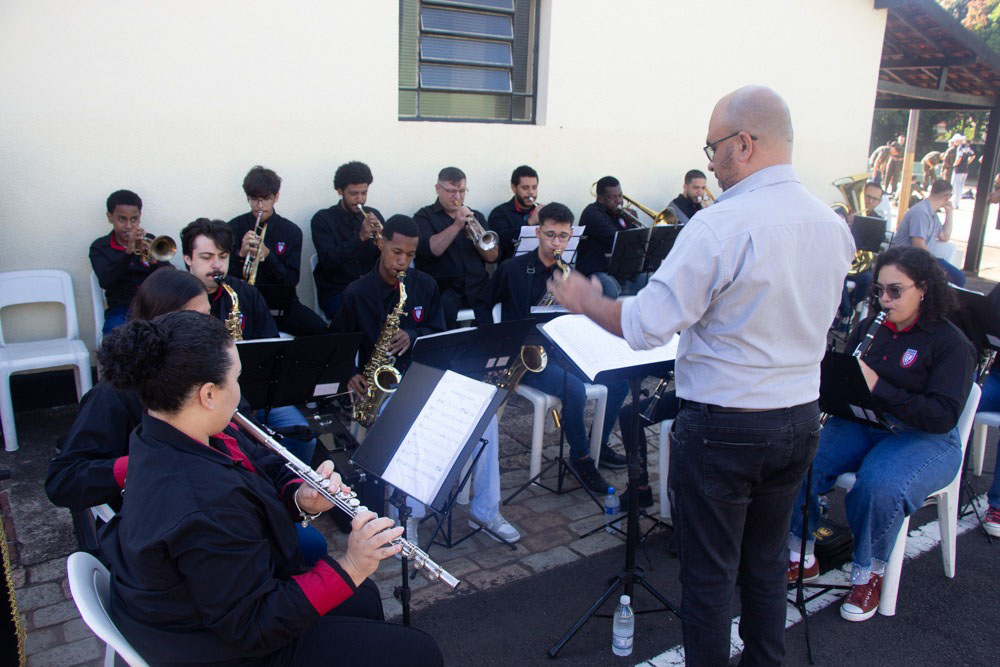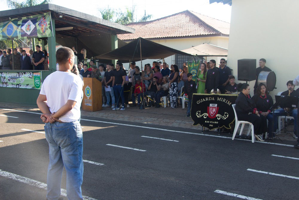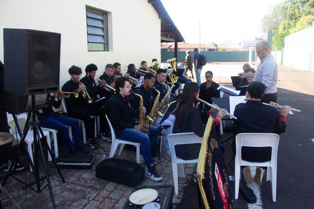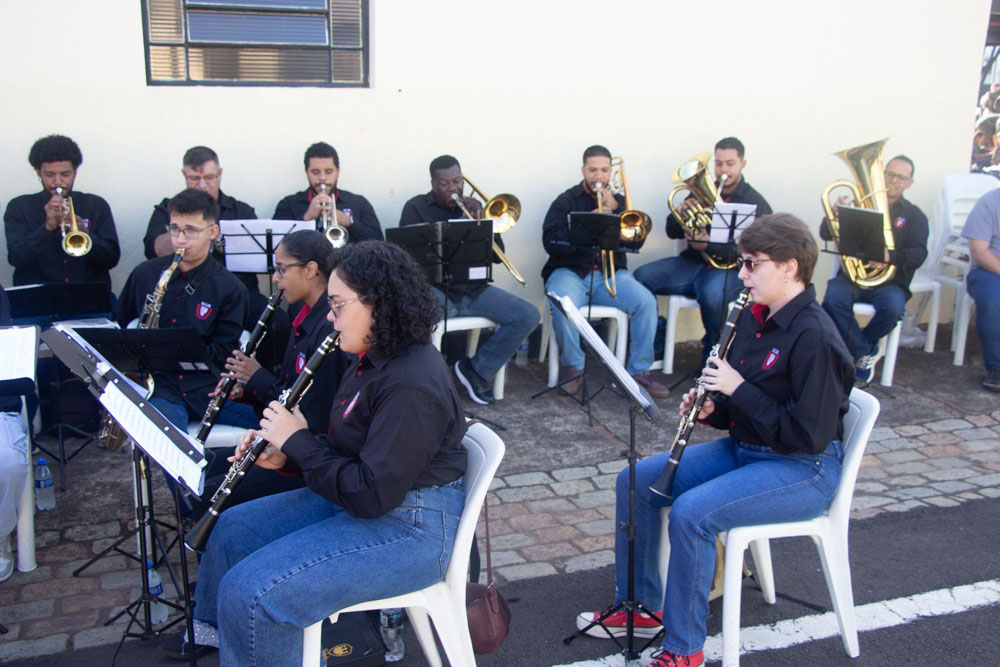 A banda executou Dobrados e o Hino Nacional Brasileiro, trazendo ainda mais solenidade e patriotismo ao evento. A participação do grupo reforça o compromisso da Guarda Mirim com a formação cívica e musical dos jovens da cidade.