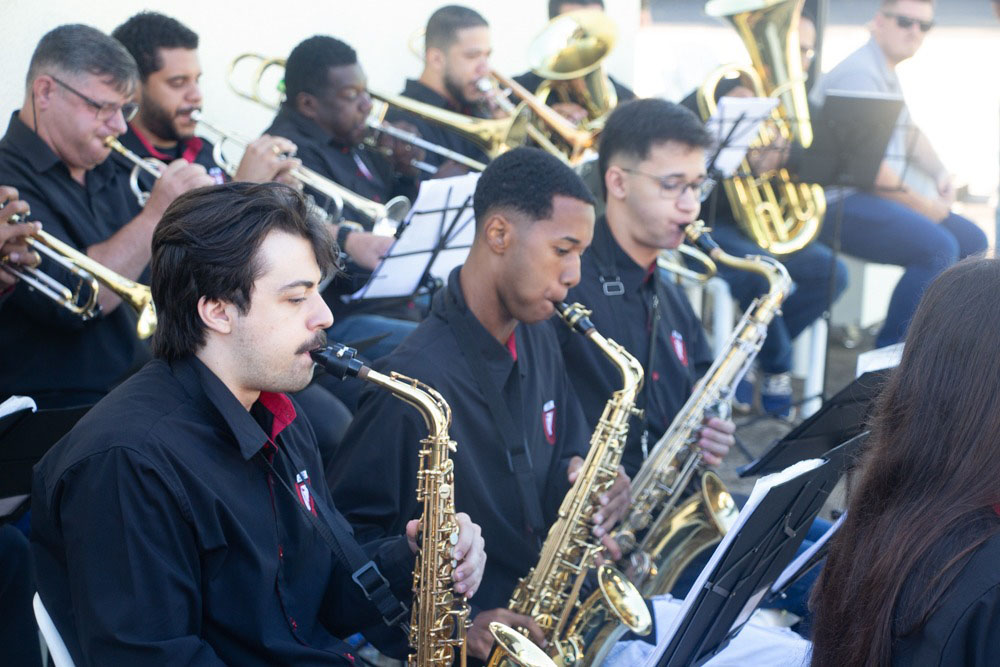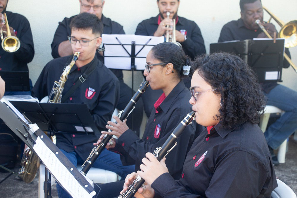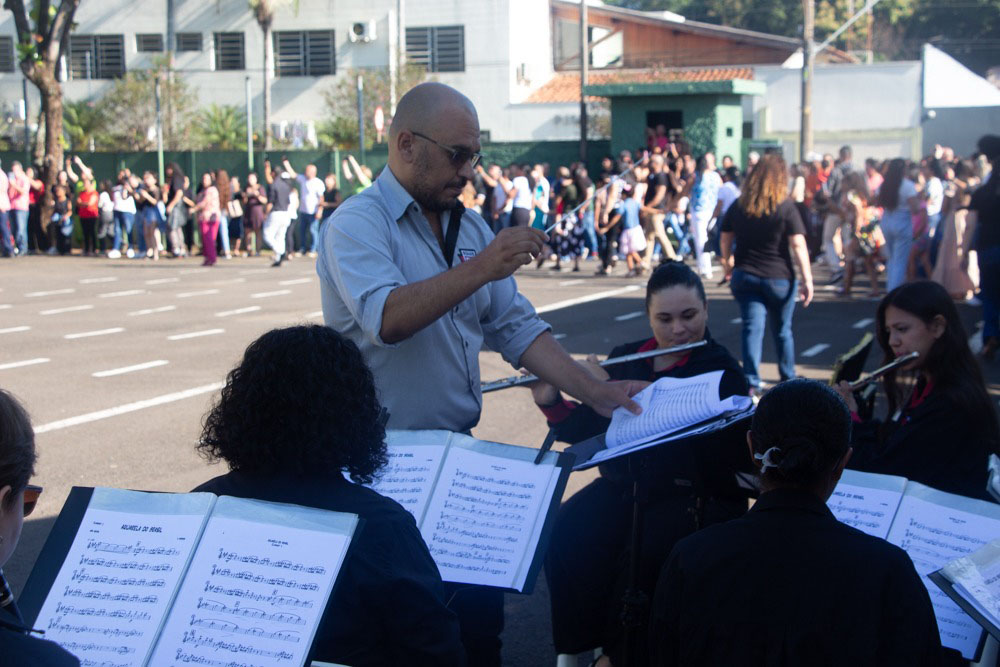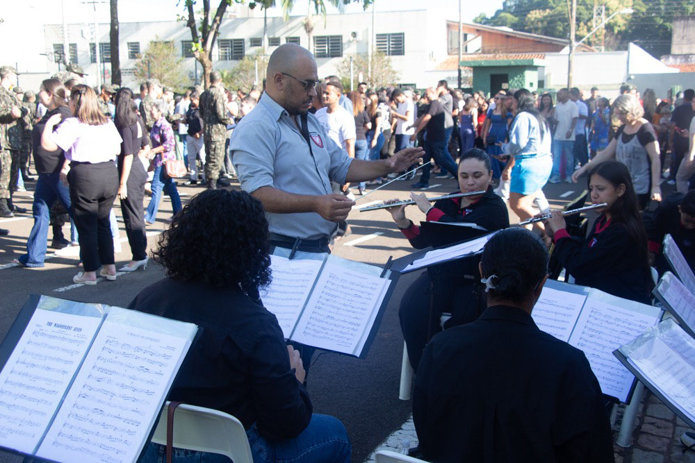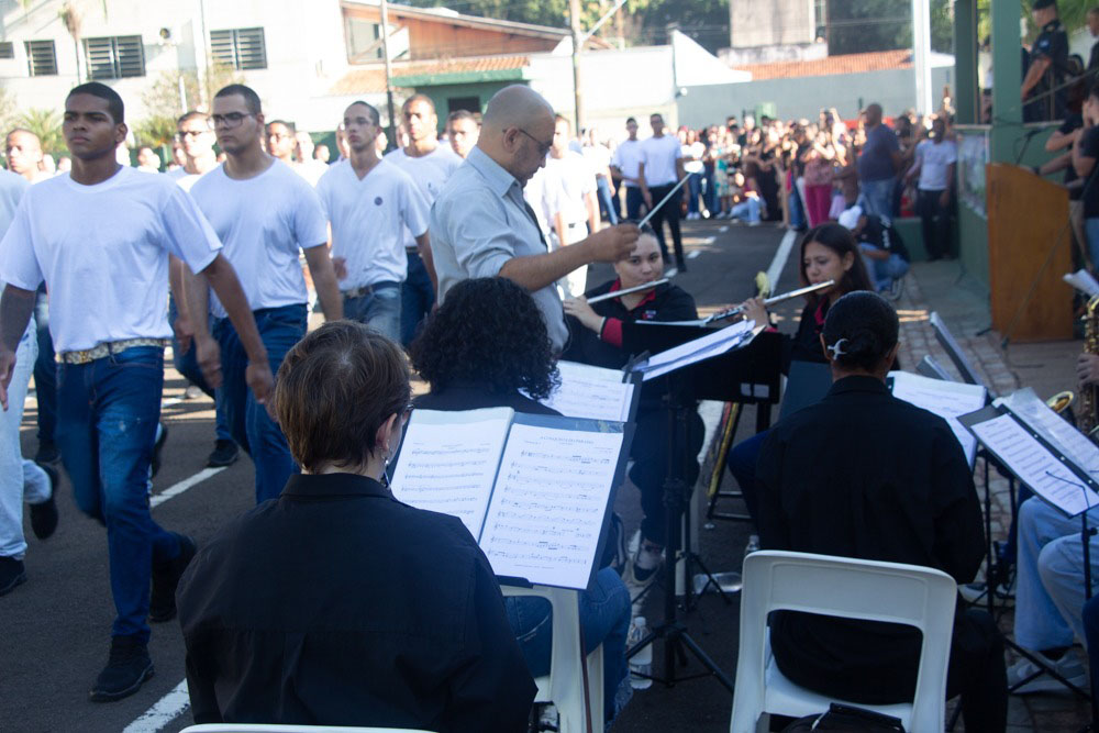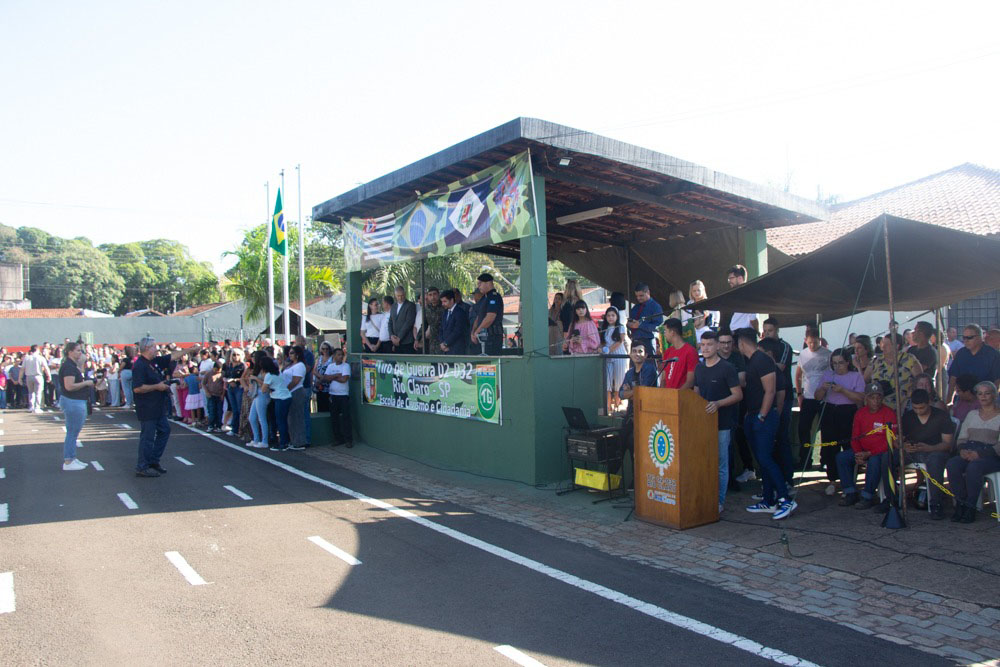 A banda executou Dobrados e o Hino Nacional Brasileiro, trazendo ainda mais solenidade e patriotismo ao evento. A participação do grupo reforça o compromisso da Guarda Mirim com a formação cívica e musical dos jovens da cidade.