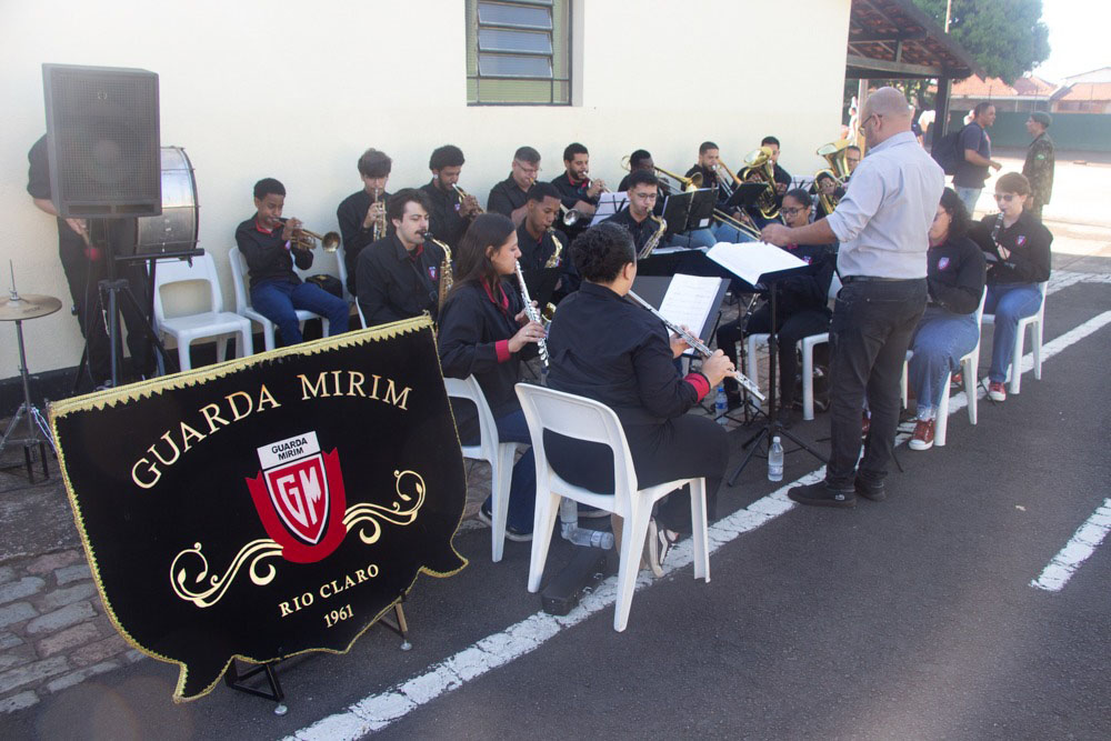 No último sábado (22), a Banda da Guarda Mirim de Rio Claro, sob a regência do maestro Jessé Francisco, marcou presença na solenidade de formatura de incorporação/matrícula dos Atiradores de 2025 no Tiro de Guerra 02-032.