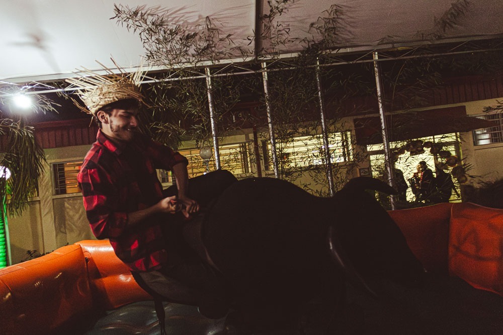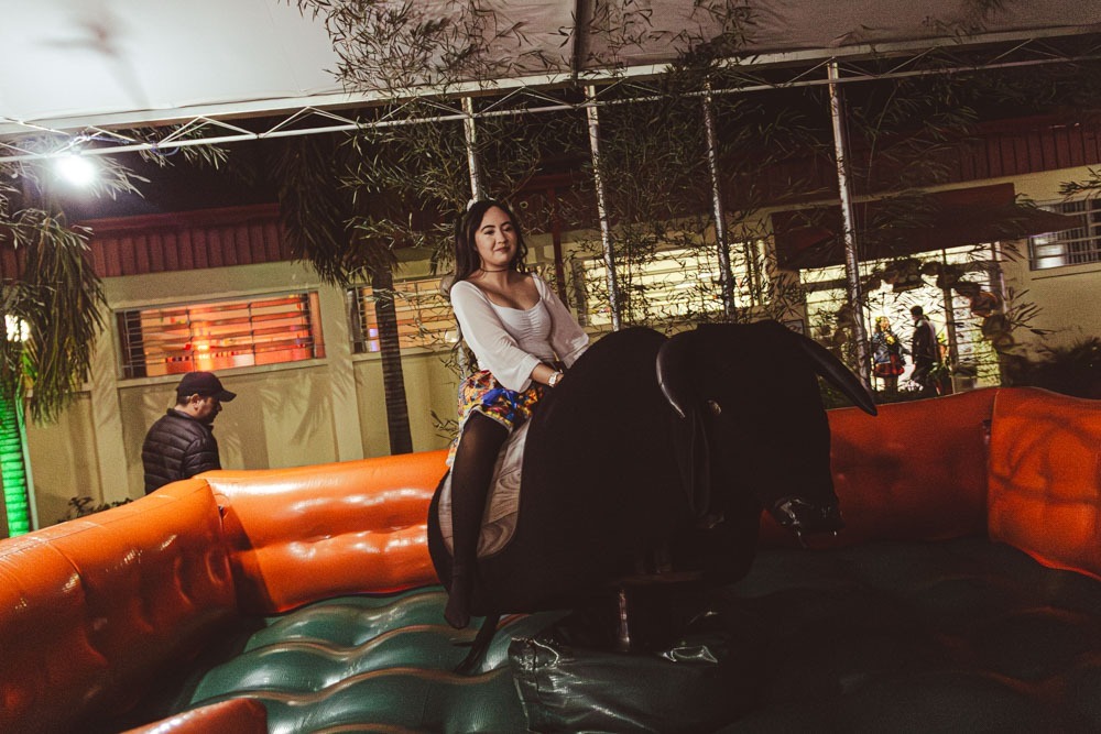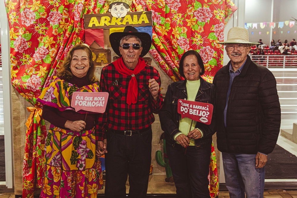 A programação foi cuidadosamente preparada para encantar o público do início ao fim. Um dos grandes destaques da noite foi o touro mecânico, que desafiou a habilidade dos participantes e garantiu momentos de pura diversão e risadas. A tradicional fogueira trouxe o charme e o calor típicos dessa época do ano, contribuindo para o clima acolhedor do evento. As barraquinhas temáticas, decoradas com cores vibrantes, ofereceram uma variedade de comidas típicas que agradaram a todos os paladares.