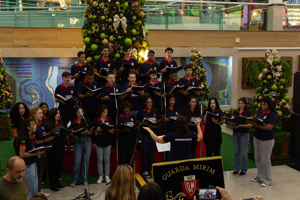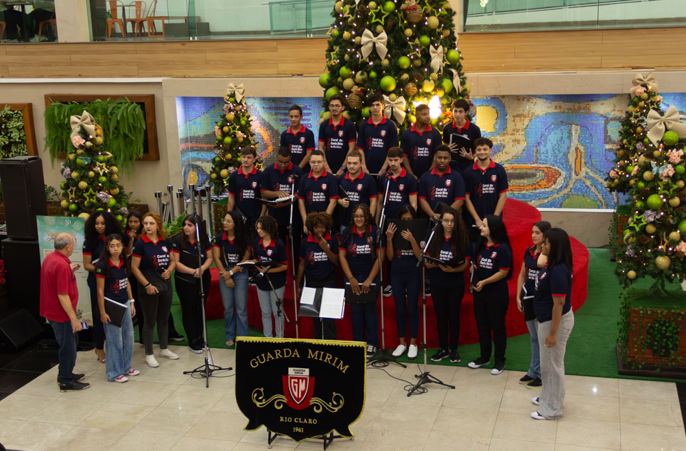O Coral da Guarda Mirim de Rio Claro realizou, no dia 18 de dezembro, uma apresentação especial de Natal na Praça de Alimentação do Shopping Rio Claro. O evento proporcionou ao público um momento de celebração, encantamento e confraternização, por meio da música e do espírito natalino.